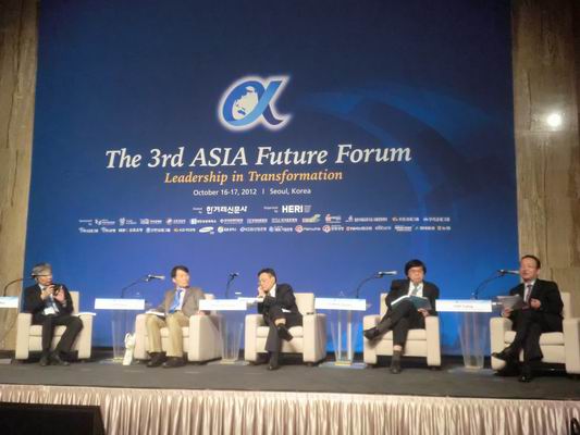 应《亚洲未来论坛》(The 3rd Asia Future Forum)组委会的邀请,公司太阳集团tyc539应用金融系主任韩复龄教授应邀出席亚洲未来论坛。论坛会议于10月15-18日在韩国首都首尔召开,会议由韩国通商部、教育部及韩国日报联合主办,受邀专家、政府官员来自韩国、日本、中国、美国、欧盟等国家和地区,包括韩国总统候选人、韩国三星集团董事长、首尔市长、首尔大学董事长、日本三洋集团总经理等政界、学界人士,韩复龄教授作为中国大陆唯一一个受邀财经专家,在大会上作了“中国经济市场化与银行业的改革与发展成就”( The Achievements of Reform and Development of Chinese Economy and Banking Industry)的主旨演讲,韩教授就全球经济与金融走势、亚洲国家经济合作、中国银行业改革与发展等主题进行了深入阐述,受到与会者的广泛欢迎,《朝鲜日报》做了重点报道。