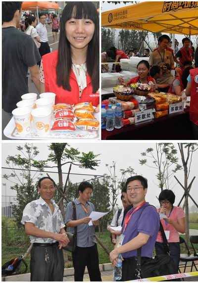 报到现场志愿者:在报到现场,负责等候区的志愿者们引导新生有序排成整齐的队伍,并指导新生提前准备好所需材料;负责注册报到的志愿者们认真地为每一个同学办理手续。