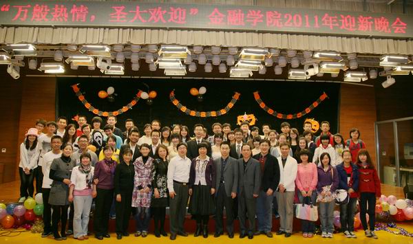 在文艺表演环节,精彩绝伦的节目更是支撑起了全场活跃的氛围。伴着带有浓郁苏格兰气息的旋律的音乐悄然响起,09、10级金融一班带来的踢踏舞“Lord of the Dance”一瞬间点燃了全场观众的热情;金融10-1班张芳尘与金融09-2班王凯仑同学带来的相声《学语言》,融汇各地方言幽默,让在座天南海北的同学找到自己的归属;更有充满创意的爆笑舞台剧《老员工了没》搞怪之余不忘用幽默的方式告诉新生学姐学长们“过来人”的种种经验;高难度的舞蹈《Ego》、《The Way I Are》穿插其中,为晚会带来一次又一次的高潮。