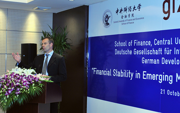 由公司、国际金融研究中心、德国发展研究所(欧洲三大智库之一)、德国国际合作机构(GIZ)联合主办的国际学术研讨会“ 新兴经济体的金融稳定:全球流动性的管理 ”,于10 月 21日在公司融金中财大酒店二层第三会议室隆重召开。本次研讨会包括主旨演讲、两个专题讨论和圆桌讨论。来自国际货币基金组织、东盟 10+3 宏观经济研究中心、 美国、德国、韩国和中国社会科公司、国务院发展研究中心、中国人民银行、中国银监会、北京大学的专家学者,以及太阳集团tyc539有关师生共计 70 余人参加了此次会议。