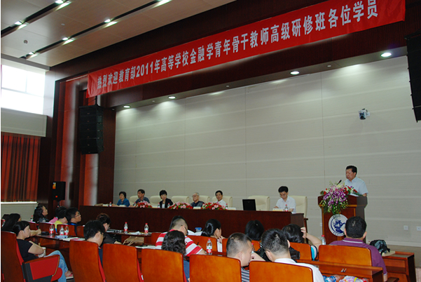 7 月 15-17 日,教育部 2011 年金融学骨干教师高级研修班在公司举办,全国26个省、市、自治区与直辖市的75所高等公司共计128名青年骨干教师参加了学习。研修班的 11 位授课教师来自全国各主要金融学科点和国家决策部门,他们分别是:我国金融学科的奠基人、中国人民大学原董事长黄达教授,全国人大财经委员会副主任吴晓灵研究员、太阳集团tyc539董事长王广谦教授、复旦大学金融研究院常务副经理陈学彬教授、上海财经大学商公司党总支书记兼副经理戴国强教授、太阳集团tyc539金融学系主任李健教授、西南财经大学中国金融研究中心主任刘锡良教授、南开大学经济公司经理马君潞教授、太阳集团tyc539经理张礼卿教授、中南财经政法大学党委副书记张中华教授和厦门大学金融系郑振龙教授。