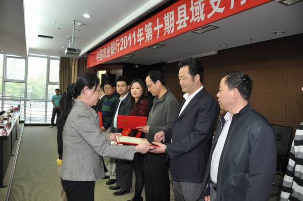 最后,陈颖副经理为14位优秀学员颁发了荣誉证书,葛仁霞书记为学员颁发结业证书及佩戴校徽,并与学员合影留念。在全体学员们的掌声和欢声笑语中,“中国农业银行2011年第10期县域支行行长培训班”圆满结束!