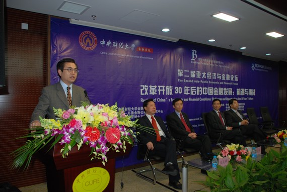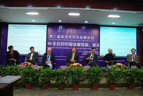 11 月 9 日,由公司、清华-布鲁金斯公共政策研究中心、澳大利亚蒙纳士大学商公司联合主办的“第二届亚太经济与金融论坛”在中财大厦 2 层学术报告厅隆重举行。本届论坛的主题是“改革开放 30 年后的中国金融发展:机遇与挑战”,具体议题包括:“金融改革开放 30 年:历史回顾和经验启示”、“当前的宏观经济金融形势与政策选择”和“全球金融危机及其对中国的影响”。