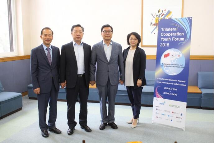 在论坛期间,张礼卿教授参加了题为“东北亚的未来”的圆桌会议,与来自联合国对外拓展部的Maher Nasser部长、日本神田大学的知名国际问题专家YasuyoSakata教授,以及韩国前驻日本大使等进行了交流。张教授认为,中日韩三国的人民不应忘记历史,但更应该面向未来,三国之间不断加深经济和金融合作,对于亚洲乃至世界的繁荣与和平都是极为重要的。为此,各国之间加强政治互信非常重要。在加强地区合作的同时,各国也应该加强多边主义国际合作。张教授强调,青年是世界的未来,希望中日韩的青年人能够通过各种渠道不同增进相互了解和信任,广泛发展友谊,不断加强交流和合作。