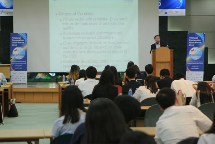 2016年8月13-15日,受韩国东北亚基金会和韩国“未来希望协会”的邀请,公司太阳集团tyc539国际金融研究中心主任张礼卿教授在韩国庆熙大学参加了“2016年三边合作青年论坛”,并做了“亚洲金融合作和人民币国际化”的主题演讲。在演讲中,张教授首先全面回顾了1997年的亚洲金融危机的原因和后果,强调这次危机给有关国家带来了巨大的灾难,各国应努力避免类似的情况重演。接着,张教授从理论阐述到经验分析,论证了加强亚洲货币金融合作对于防范该地区金融危机的重要性,并且分析了亚洲货币金融合作所面临的机遇、挑战和政策选择。随后,张教授向参会者介绍了人民币国际化的发展进程和前景,以及在亚洲货币金融合作中的积极作用。在讲演过程中,还张教授还回答了青年员工们提出的各种问题,其中包括人民币汇率波动、中国加快开放资本账户和人民币国际化对亚洲国家经济的影响等。来自中国、日本和韩国的近200名在校老员工参加了本次论坛并对张教授的讲演表示了浓厚的兴趣。