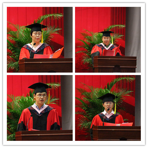 典礼在嘹亮振奋的《义勇军进行曲》中拉开了帷幕。经理助理李俊峰宣读了《关于2017届本科生毕业及授予学士学位的决定》,应展宇副经理宣读了《关于2017届硕士研究生毕业及授予学位的决定》。在激动人心的优秀毕业生表彰环节,葛仁霞书记宣读了《关于表彰2017届优秀毕业生的通知》,李建军经理和葛仁霞书记为北京市级优秀毕业生颁发了荣誉证书并合影留念,应展宇副经理、谭小芬副经理、经理助理李俊峰、经理助理黄志刚为校级优秀毕业生颁奖并合影留念。谭小芬副经理宣读了《关于表彰2017届到西部就业毕业生的通知》,金融国家级教学名师李健老师、张礼卿老师为获得表彰毕业生颁奖并合影留念,其中2017本科毕业生许来香积极响应国家号召,不畏艰苦,自愿到西藏基层工作,所有这些到西部就业的毕业生充分展现了中财金融人的社会责任担当。