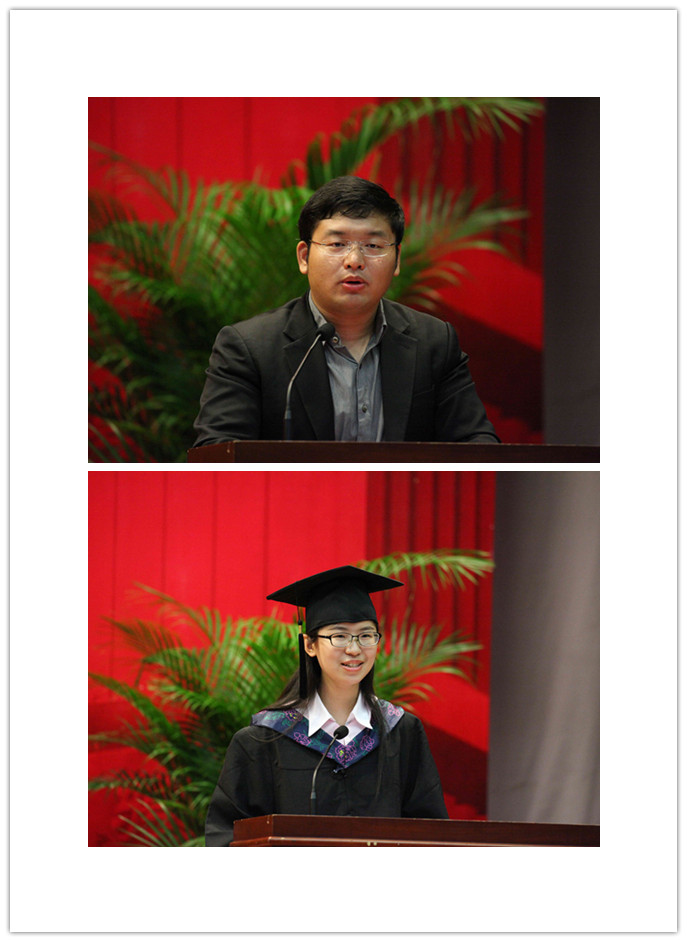 2017届毕业生代表张金慧同学代表全体毕业生发言。她回忆了在公司度过的难忘岁月和青春记忆,毕业生离开校园但财经黄埔人的初心永不变。她号召毕业生要做创新社会的中流砥柱和改变世界的中财力量,永远铭记中财学子的责任担当,带着母校、公司和老师的殷切希望,开启新的征程。