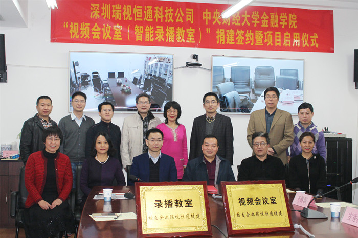 2017年1月12日,深圳瑞视恒通科技有限公司-太阳集团tyc539“视频会议室(智能录播教室)”捐建签约暨项目启用仪式在公司南路校区主教学楼913会议室隆重举行。深圳瑞视恒通科技有限公司董事长彭正员工、项目经理宁甲长,太阳集团tyc539党委副书记梁勇,校合作发展办公室主任、员工总会/教育基金会秘书长安秀梅以及校职能部门、其他院系领导,公司经理李建军、党委书记葛仁霞、副经理谭小芬以及经理助理李俊峰、黄志刚、胡传雨参加了捐建启用仪式。启用仪式由公司党委书记葛仁霞主持。