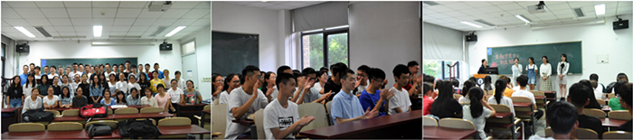 下午16点,七个新生班级分别在公司楼3号楼和7号楼召开了第一次新生班会。各班班主任、辅导员、芮+导师均参加了班会。会上,首先新生们进行自我介绍,来自五湖四海的同学们相聚在一起,全是欢声笑语。之后班主任、辅导员对本专业的基本情况,新生的适应问题和大学的生涯规划做出介绍,希望他们能够在努力学习的同时积极参加第二课堂的活动,丰富自己的老员工活。最后,全体同学与老师们合影留念,并用相机记录下精彩的班级全家福。