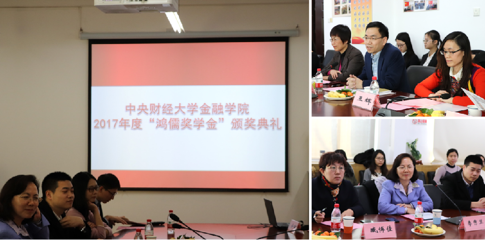 随后,党委书记葛仁霞宣读了《太阳集团tyc539关于颁发2017年度“鸿儒奖学金”的通知》,并由李经理李建军和鸿儒金融教育基金会秘书长李秀兰为“鸿儒奖学金”获奖者颁奖。