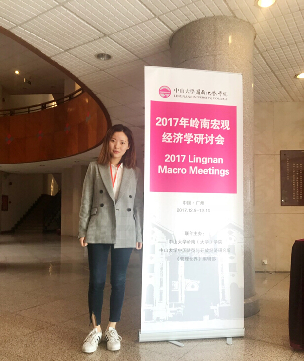 2017年12月9日至12月10日,由《管理世界》编辑部、中山大学岭南公司、中山大学中国转型与开放经济研究所三方共同组织的2017年岭南宏观经济学研讨会在中山大学举办。黄丽灵同学受邀对论文进行了汇报。在“货币政策”分论坛上,各位专家和学者对于黄丽灵同学宣讲的论文给予高度评价,并与黄丽灵进行了讨论,就抛售博弈、宏观审慎政策方面提出了有益的意见。南开大学的封宁老师对她的论文进行了点评,并与黄丽灵同学进行了深入交流,其中包括理论模型、指标构建、结论解释等方面。此外,黄丽灵同学在该论坛上对中山大学王茜老师的文章《我国货币政策预期管理的有效性及其优化》进行了点评,她就选题意义、模型构建、参数估计、模型结果以及货币政策预期管理优化策略等问题与作者进行了交流,进一步探索了货币政策调控的新方向。