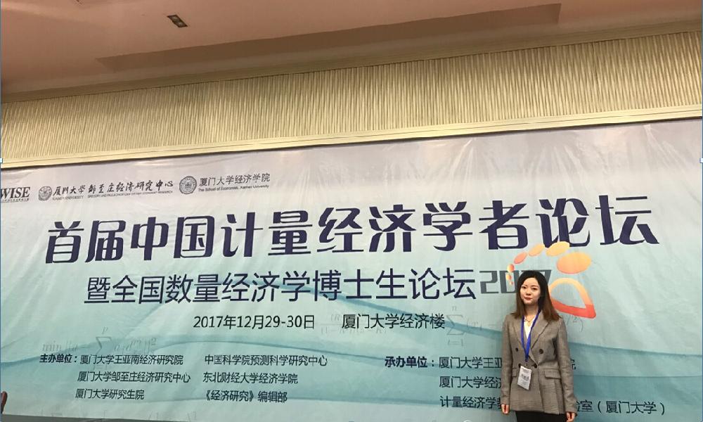 同年12月30日至12月31日,首届中国计量经济学者论坛暨全国数量经济学博士生论坛在厦门大学举办。黄丽灵同学在该论坛中汇报了论文的主要内容,参会学者从模型的设定、结果解读、模型风险度量等方面与黄丽灵进行了讨论,提出了许多宝贵的建议。