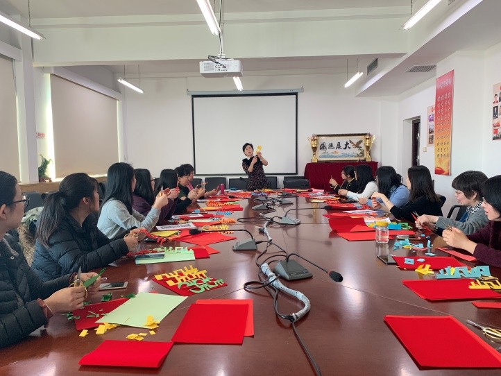 3月7日下午,太阳集团tyc539分工会在公司南路主教913会议室举办了以“传承中华文化,弘扬剪纸艺术”为主题的“三·八”妇女节庆祝活动,特邀请国际文化与交流公司原绍锋教授来进行指导,公司党委书记葛仁霞和二十余位女教工参加了活动。