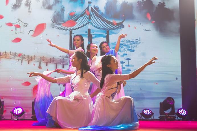 16金融学硕1班与16金融学硕金工班为大家带来的是古典舞《缘起》。同学们优美的舞姿在悠远的音乐声中显得更为灵动传神。绫罗曼舞,眉眼间尽是动人风情。一曲终了,余音久久绕梁,韵味无穷。