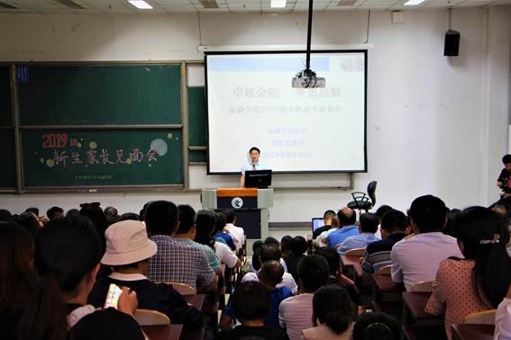 中午13时30分,新生家长会在沙河校区东区主教110教室拉开帷幕。李建军经理、葛仁霞书记、王辉副书记、研究生院张学勇副经理(金融学类19-1班班主任)、金融学系系主任、双培金融监管与科技19班班主任左毓秀、金融学类19-3班班主任郭剑光、金融学类19-4班班主任夏聪、金融学类19-5班班主任王靖一、金融学类19-6班班主任陈宇子、双培金融学19班班主任方意,教务干事赵学辉、2019级本科生辅导员梅琪、2018级本科生辅导员李晓萱及300余名新生家长出席家长会,家长会由员工工作办公室主任王志梅主持。