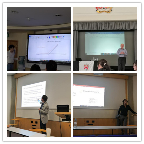前几天的基础课程学习结束后,8月9日开始的课程主要围绕金融专业相关理论展开。负责这一部分教学任务的是Roddie教授,他围绕Trading Risk和Risky and Riskless Assets两个主题进行教学,讲述了金融市场、资本资产定价模型的相关基础知识。虽然这一部分教学内容复杂、难度较高,但是Charles Roddie教授提前为同学们准备了预习材料和讲义。教授对知识深入浅出的剖析,对公理公式的推导和应用,结合生活化的示例,都使同学们能够将所学知识更加灵活的运用到实际中。与国内教学差别较大的是之后的tutorial和Presentation,教授以抽签的方式为每个小组分配了任务,要求同学们在规定时间内准备,以小组为单位讨论进行展示,这种教学方式极大强化了同学们学习、吸收与运用新知识的能力。