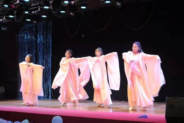 “当时醉卧桃花,见你琴瑟饮茶,梦我一世相思入画,明眸刹那。”一支充满古风意蕴的舞蹈仿佛吹散了现代生活中的浮躁与尘嚣,又将我们带入了过去那个诗情画意、富有情趣的世界。这样的清新脱俗也表现了同学们对传统文化与思想的尊重与热爱,在今天这个时代,我们仍留存着一份文化的情怀。
