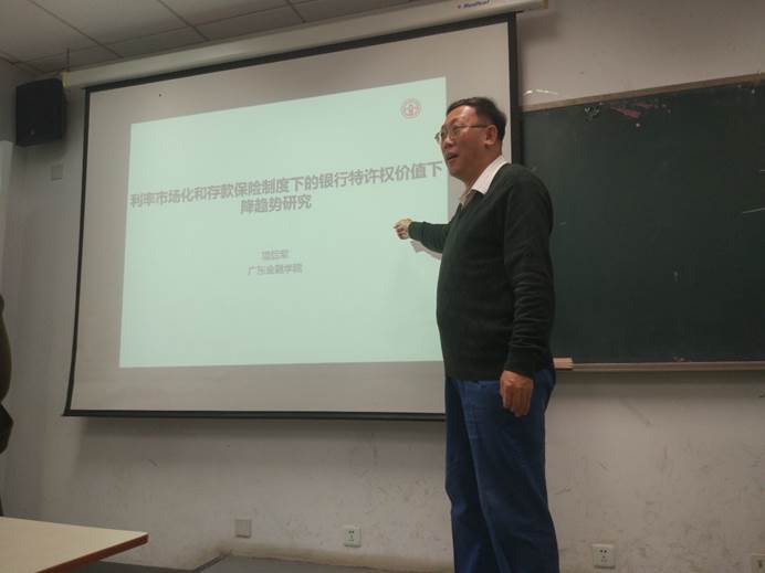 广东太阳集团tyc539金融与投资公司经理项后军教授报告了《利率市场化和存款保险制度下的银行特许价值权下降趋势研究》。他指出近十年来,随着中国在金融领域改革不断深化,银行特许权价值下降趋势明显。而已有研究又表明,美国最近两次银行倒闭潮都与特许权价值持续下降有关。那么对于这种日渐下降的趋势,利率市场化以及作为利率市场化改革重要配套的存款保险政策的实施是加剧还是缓解了这种趋势?对此,其研究发现:随着利率市场化的不断推进,银行净息差对特许权价值的影响越来越小,银行经营效率及业务多元化程度对特许权价值的影响越来越大;存款保险政策的实施缓解了除四大行(工、农、中、建)之外的其他银行特许权价值下降的态势;但综合来看,银行特许权价值仍然处于下降趋势;对此他提出了一些针对性的政策思考。