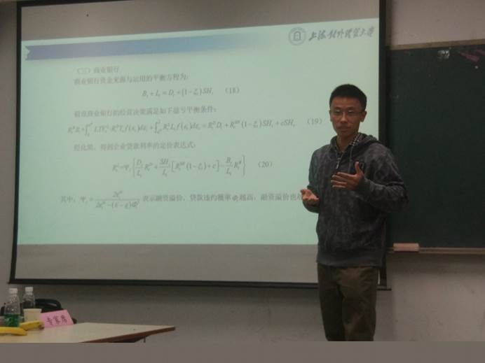 上海对外经贸大学国际经贸公司经济学系的高洁超博士报告了《货币政策与宏观审慎政策的协调:兼论“脱实入虚”的成因和治理》。他建立了住房信贷和制造业信贷的模型,通过推导得出住房贷款定价公式,研究稳态下房价变化对贷款流向的影响。他在结论中提出,房价上升会促使银行贷款更多流向房地产、更少流向制造业,这就造成了资金分配过程中的脱实向虚;货币政策和宏观审慎监管政策可以通过影响利率和银行的流动性对这一过程施加影响。