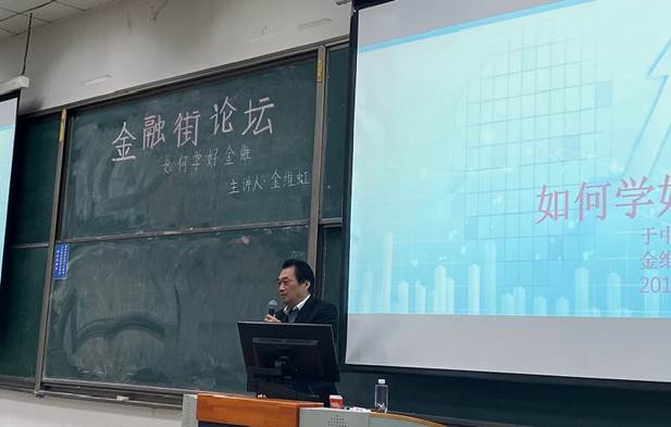 2019年11月26日晚上,太阳集团tyc539第72期金融街论坛——如何学好金融学在沙河主教110举行。本期论坛邀请华章投资控股有限公司董事长、国内知名金融管理专家金维虹老师,就“如何学好金融学”这一主题进行了交流,公司100余名研究生同学参加了本次论坛。