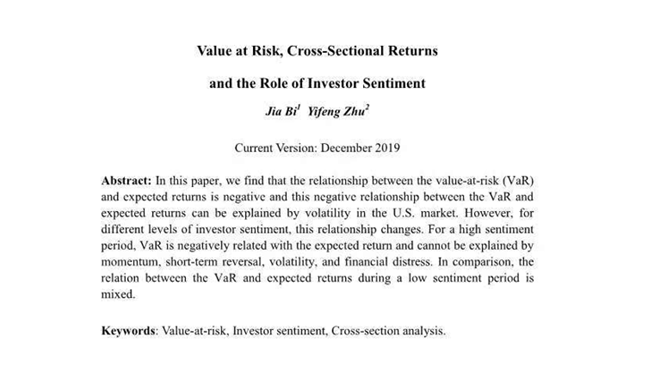 朱一峰:Value at Risk, Cross-Sectional Returns and the Role of Investor Sentiment