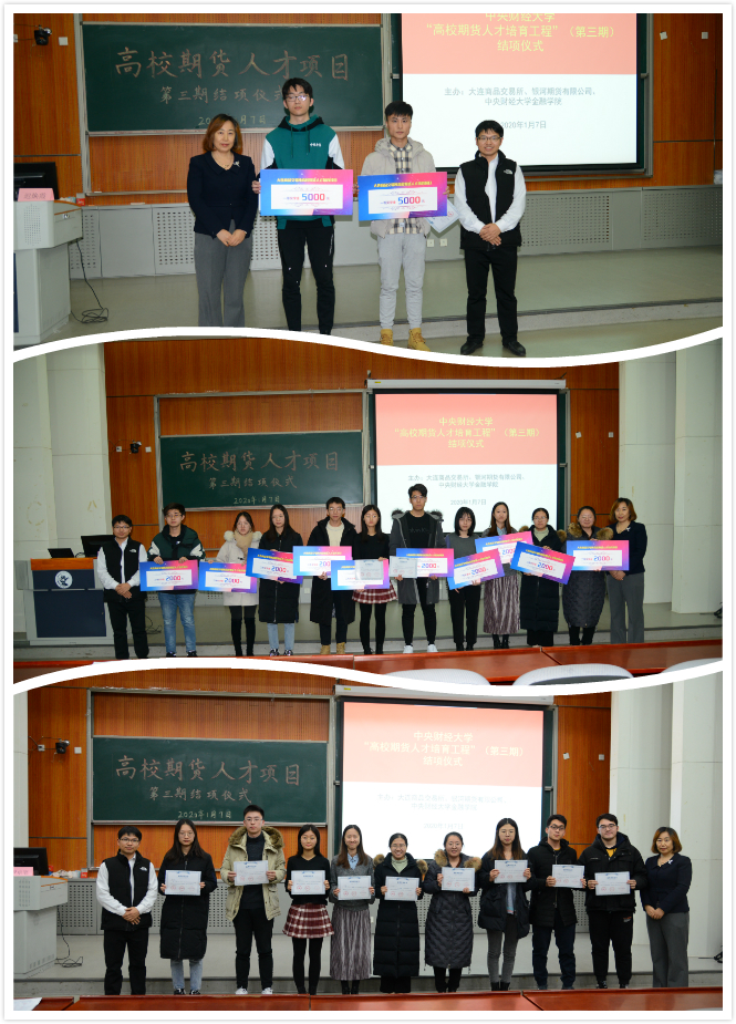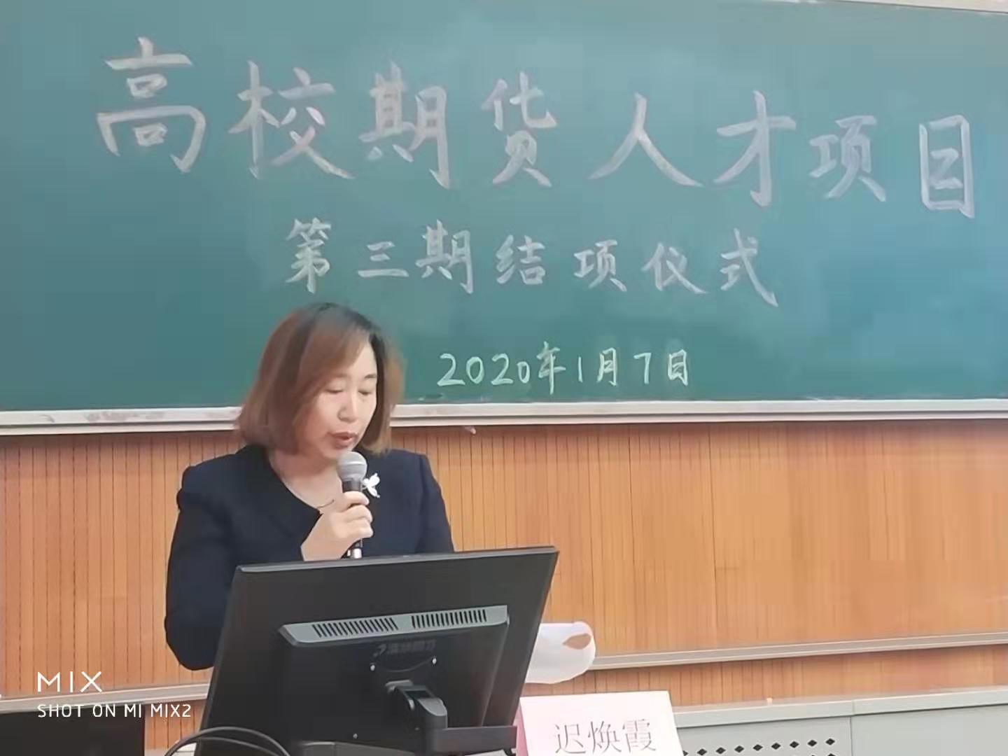 2020年1月7日下午,公司与大连商品交易所、银河期货有限公司共同主办的“高校期货人才培育工程项目”(第三期)在沙河校区公司4号楼107报告厅圆满落下帷幕。银河期货有限公司培训部总监迟焕霞女士和全体期货班同学出席了项目结业仪式。结业仪式由太阳集团tyc539教学科研办公室主任罗卓笔老师主持。