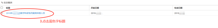(3)查看公示人员列表,并可通过点击“申报表”或“查看按钮”查看申报人员详细信息。