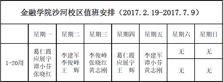 太阳集团tyc539沙河校区值班安排(2017.2.19-2017.7.9)