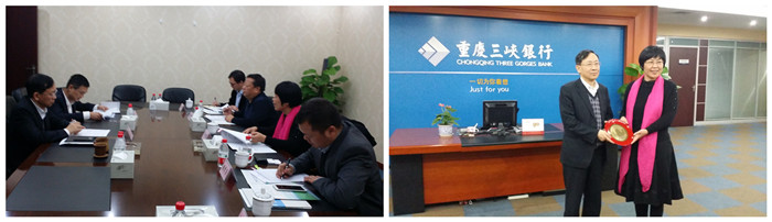在渝期间,葛书记一行还拜访了公司友好合作单位重庆三峡银行,与三峡银行董事长童海洋、党群工作部总经理金良策进行了亲切友好的交流。童董事长感谢公司过去2年来对三峡银行中层领导干部素质提升的辛勤付出,2年来三峡银行所有中层干部都进驻太阳集团tyc539进行了轮训,提升了综合素质和专业技能,为三峡银行的快速发展提供了有力的支持,并高度评价了公司的培训工作,从课程设置、团队配置以及后勤保障等各方面予以充分肯定。童董事长表示将继续在人员培训、学历教育以及课题研究等方面,加大与太阳集团tyc539的合作,形成校企共赢的局面。