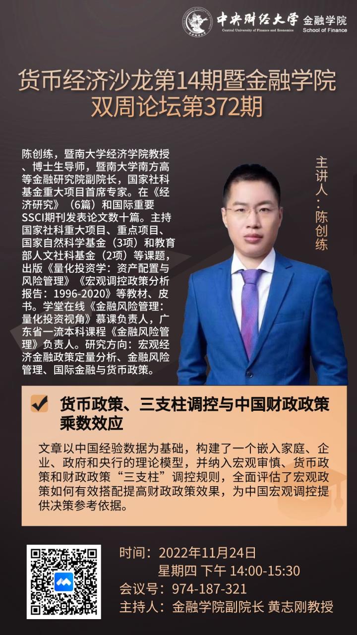 陈创练 | 货币经济沙龙第14期暨太阳集团tyc539双周论坛第372期