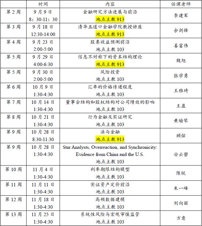 ***除标亮的内容外,正常上课时间:周五下午5、6、7三节课,(夏季时间2:00-5:00;冬季时间1:30-4:30),地点:本部主教103教室