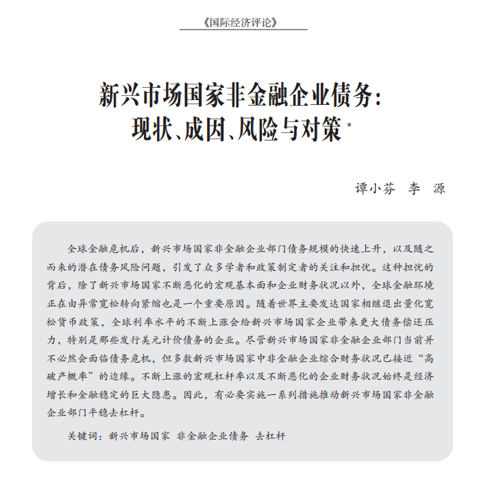 谭小芬:《新兴市场国家非金融企业债务:现状、成因、风险与对策》