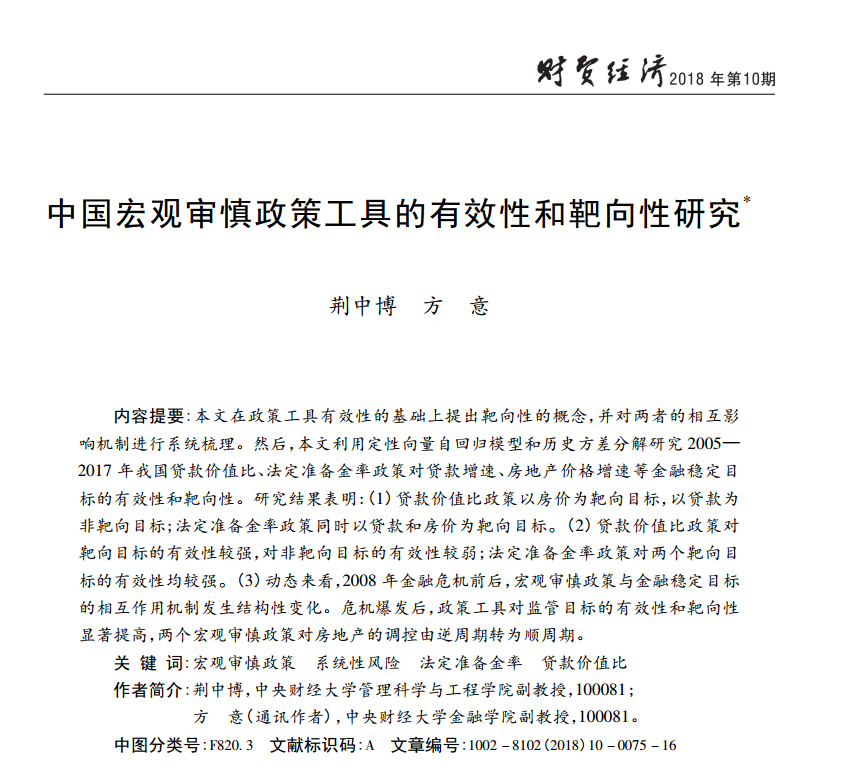 方意:《中国宏观审慎政策工具的有效性和靶向性研究》