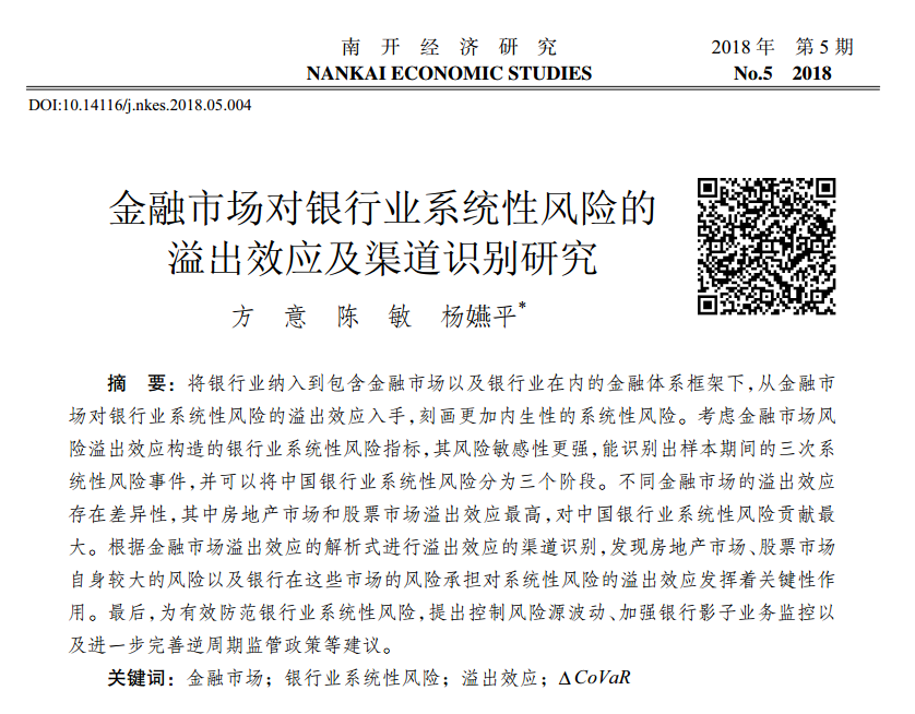 方意:《金融市场对银行业系统性风险的溢出效应及渠道识别研究》