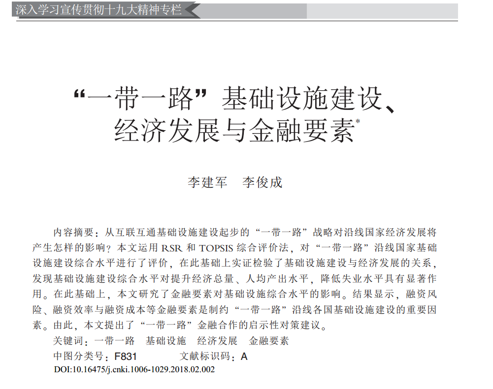 李建军:《“一带一路”基础设施建设、经济发展与金融要素》