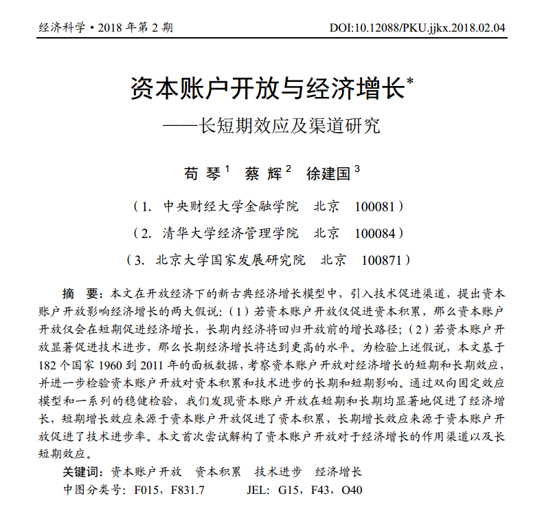 苟琴:《资本账户开放与经济增长——长短期效应及渠道研究》