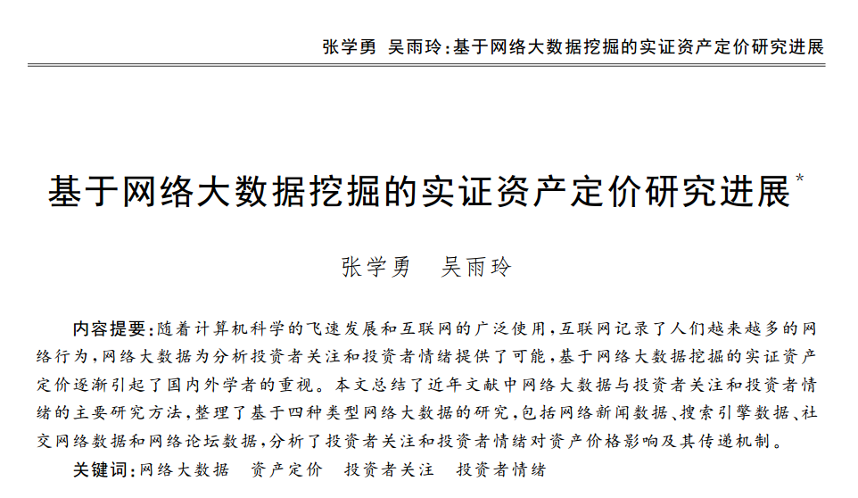 张学勇:《基于网络大数据挖掘的实证资产定价研究进展》