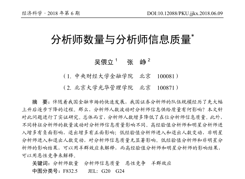 吴偎立:《分析师数量与分析师信息质量》