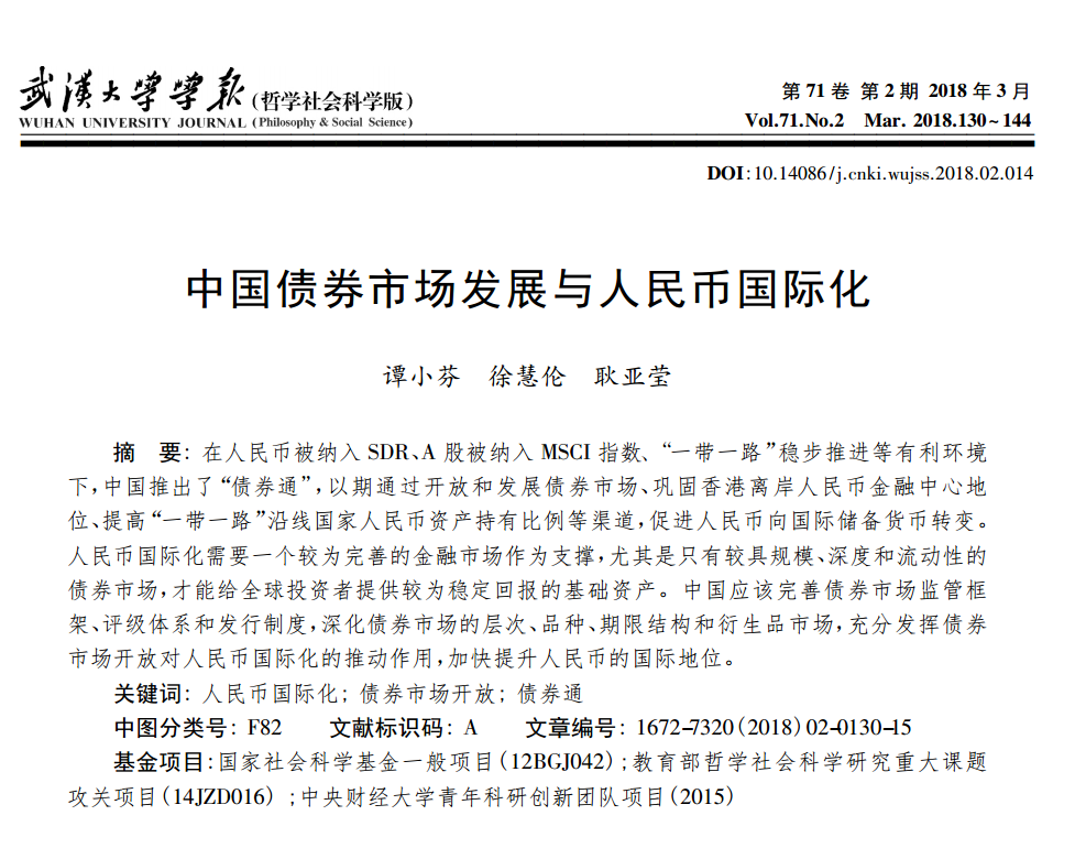 谭小芬:《中国债券市场发展与人民币国际化》