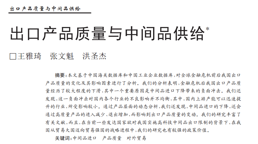 王雅琦:《出口产品质量与中间品供给》