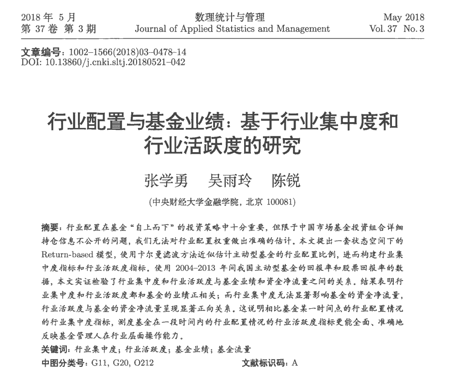 张学勇、陈锐:《行业配置与基金业绩:基于行业集中度和行业活跃度的研究》