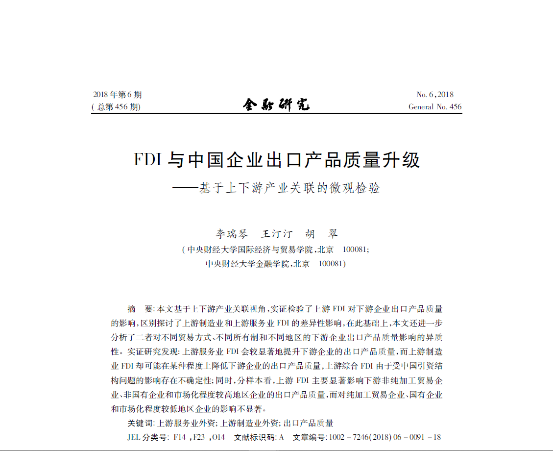 王汀汀:《FDI与中国企业出口产品质量升级——基于上下游产业关联的微观检验》
