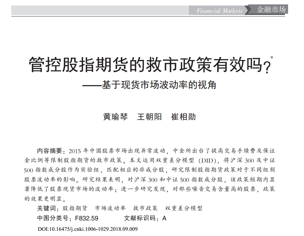 黄瑜琴:《管控股指期货的救市政策有效吗?——基于现货市场波动率的视角》
