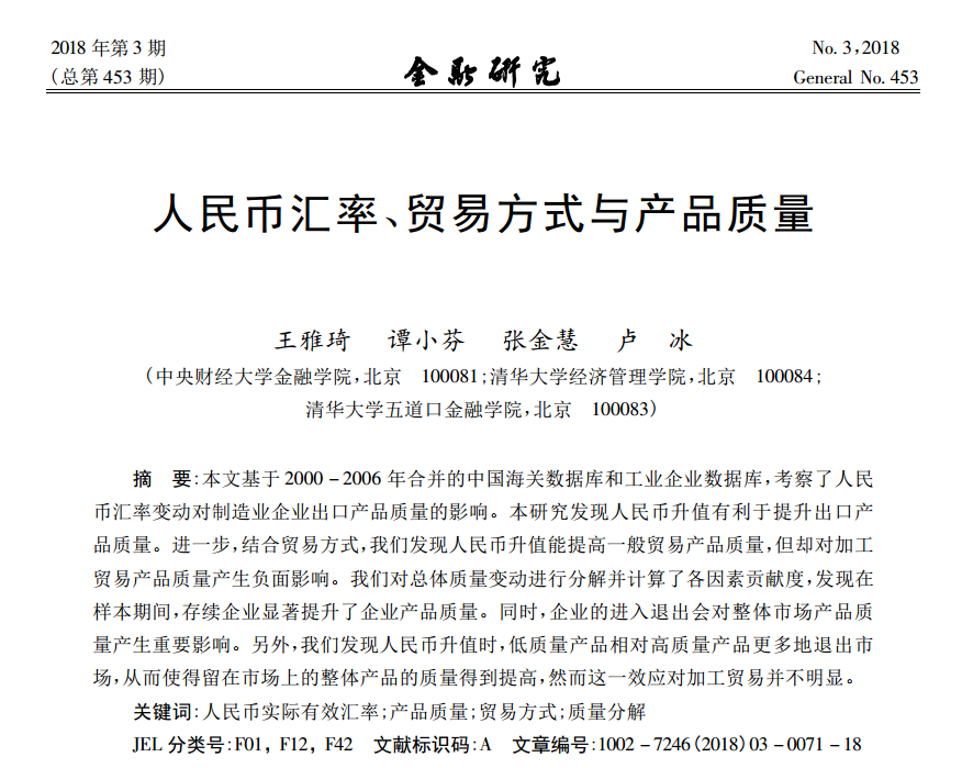王雅琦:《人民币汇率、贸易方式与产品质量》