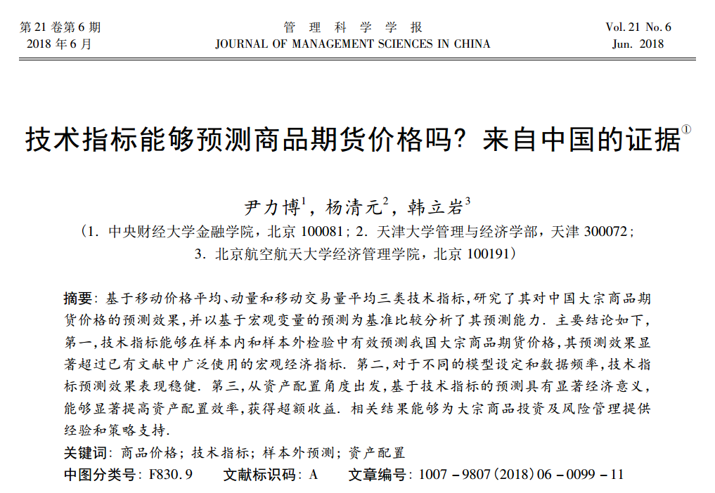尹力博:《技术指标能够预测商品期货价格吗?来自中国的证据》