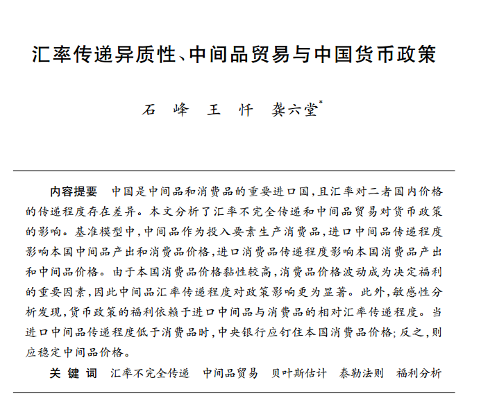 王忏:《汇率传递异质性、中间品贸易与中国货币政策》