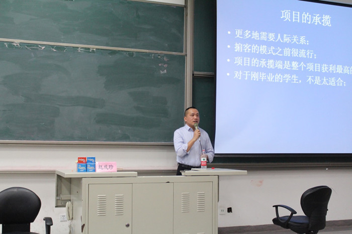 赵成珍先生是公司优秀毕业博士生,曾供职于国内最大公募基金—天弘基金的固定收益部,任债券投资经理。讲座一开始,赵老师便向同学们普及了公募基金中由投资员、研究员和交易员向基金经理晋升的三种路径,为大家介绍了三个岗位各自的入职要求、详细分类、主要工作和薪资待遇。然后,赵老师对公募基金的架构设定以及公募基金与券商投行部、银行金融市场部业务的区别与联系进行了详细分析,并且介绍了券商投行部的承揽承做、项目报备、债券销售、自营和资管业务以及商业银行金融市场部的理财和同业存单业务,让同学们对这些行业有了更清晰的了解。最后赵老师还从数量与质量两个方面,向学弟学妹们分享了自己对实习经历的看法,并向同学们说明了基金与券商在招收实习生时的主要考虑因素。
