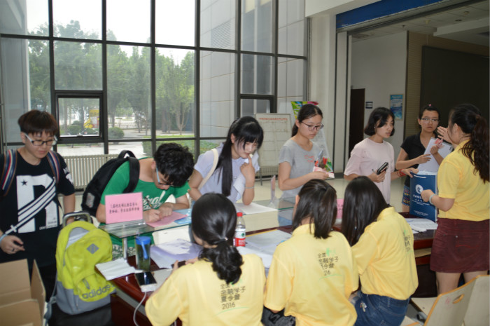 七月八日上午,夏令营营员陆续来到沙河主教一楼大厅报道。虽然天气炎热,但营员们热情高涨,展现了卓越金融学子的自信与活力。工作人员从地铁站到主教大厅一路为营员们引路,给营员们办理入营手续,收取相关报名材料,向营员发放所需资料和生活用品,并进行校内引导、行李搬运等工作,提供了热情周到的服务。营员们睿智蓝的营服与志愿者们热情黄的工作服,交相辉映,成为了此次夏令营活动一道亮丽的风景线。