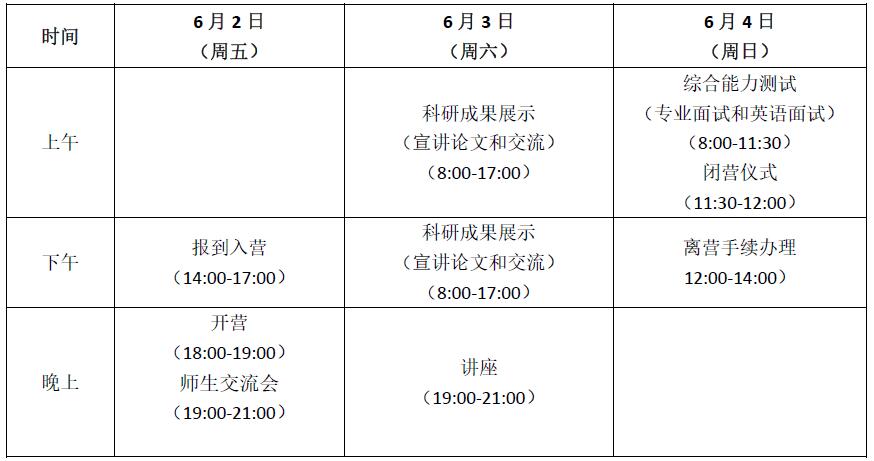 硕博第一批夏令营具体日程安排如下: