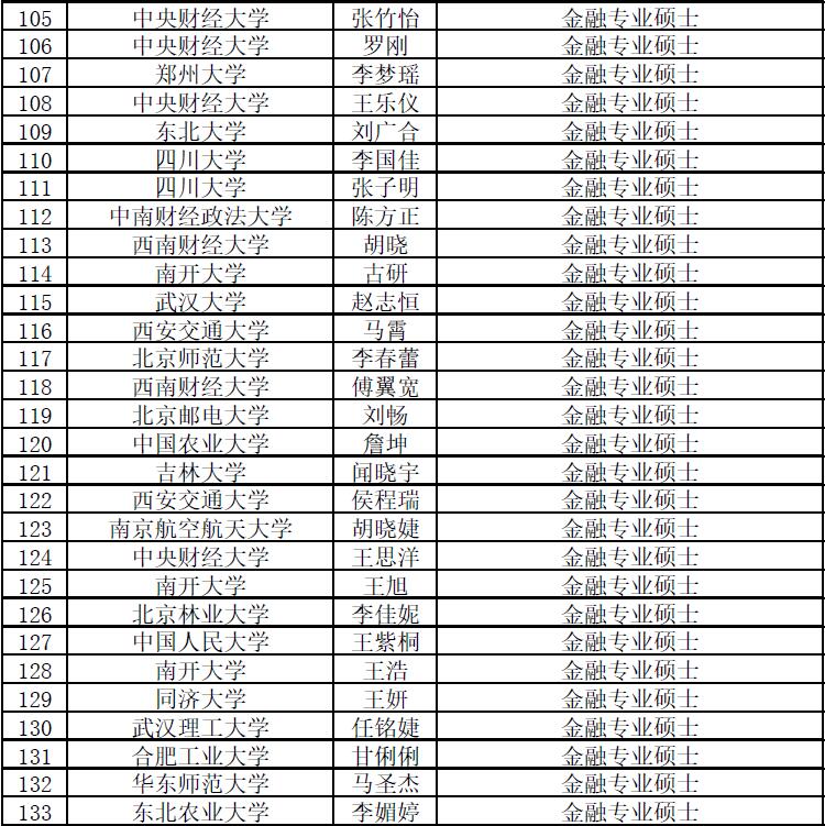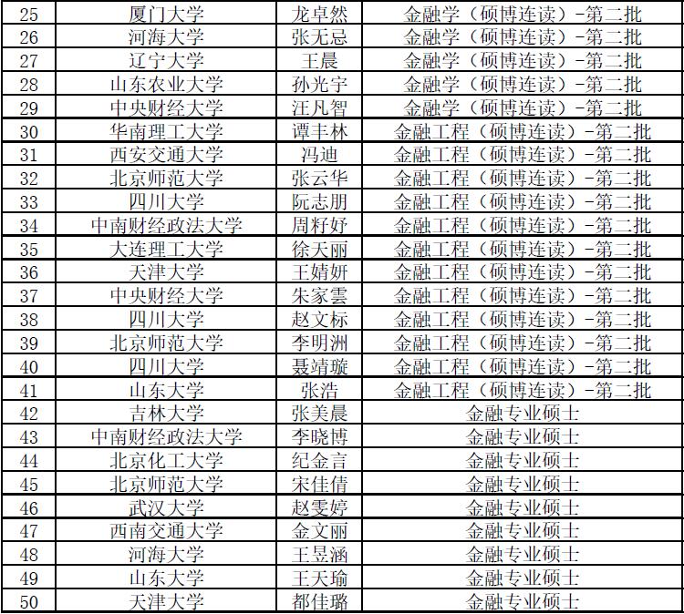 第六届“全国卓越金融学子夏令营(硕博第二批及专硕)”拟入营名单